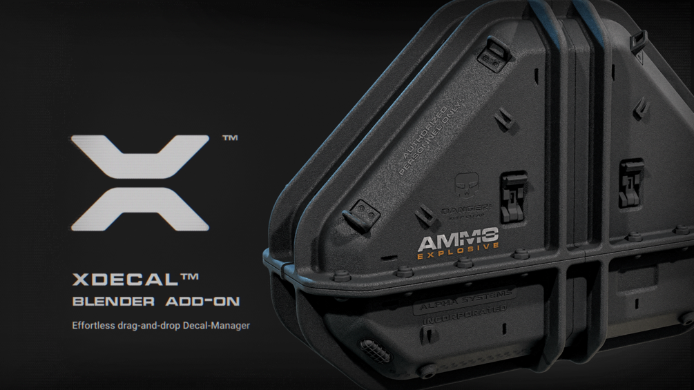 Welcome to XDECAL™, the ultimate Blender Drag-and-Drop Decals Manager! With XDECAL™, you can easily texture and ornament your Blender models without the need for UV maps. Add stunning decals and textures with realistic damage and peel effects to bring your models to life. Whether you're a beginner or a seasoned artist, XDECAL™ makes the process simple and efficient. It works exceptionally well on hard-surfaced models with curvature, allowing you to focus on your creative vision.